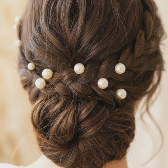 Designed for brides who love simplicity with intention, this set of three pearl hairpins brings a soft, luminous touch to your wedding look. Each pin feels delicate yet refined, crafted to elevate your hairstyle without overwhelming it — the kind of detail that photographs beautifully and feels timeless for years to come.