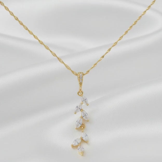 - Leaf‑inspired pendant with marquise‑cut stones