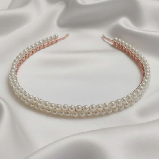 Double Row Glass Pearl Bridal Headband – Soft White