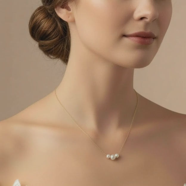 A soft glow that feels like a quiet moment of connection — the Lueur Bridal Pearl Necklace is crafted for the woman who cherishes elegance that speaks gently yet lingers beautifully. With its trio of luminous pearls, Lueur becomes a symbol of harmony, tenderness and the meaningful bonds celebrated on a wedding day.